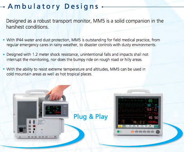 Kết nối module với Monitor chính để để sử dụng cố định trong ICU hoặc tách rời độc lập thành Monitor vệ tinh dùng vận chuyển cấp cứu với thời lượng Pin lâu, đầy đủ các thông số bệnh nhân tích hợp