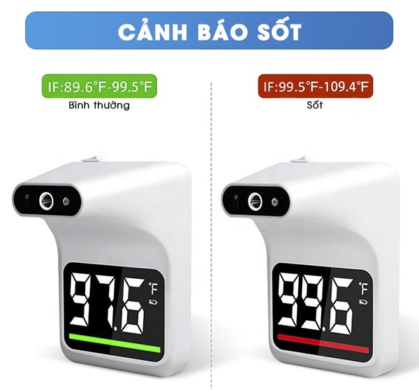 Chỉ báo đèn LED, báo động bằng âm thanh và màu sắc khi nhiệt độ cao trên 37.5 độ C